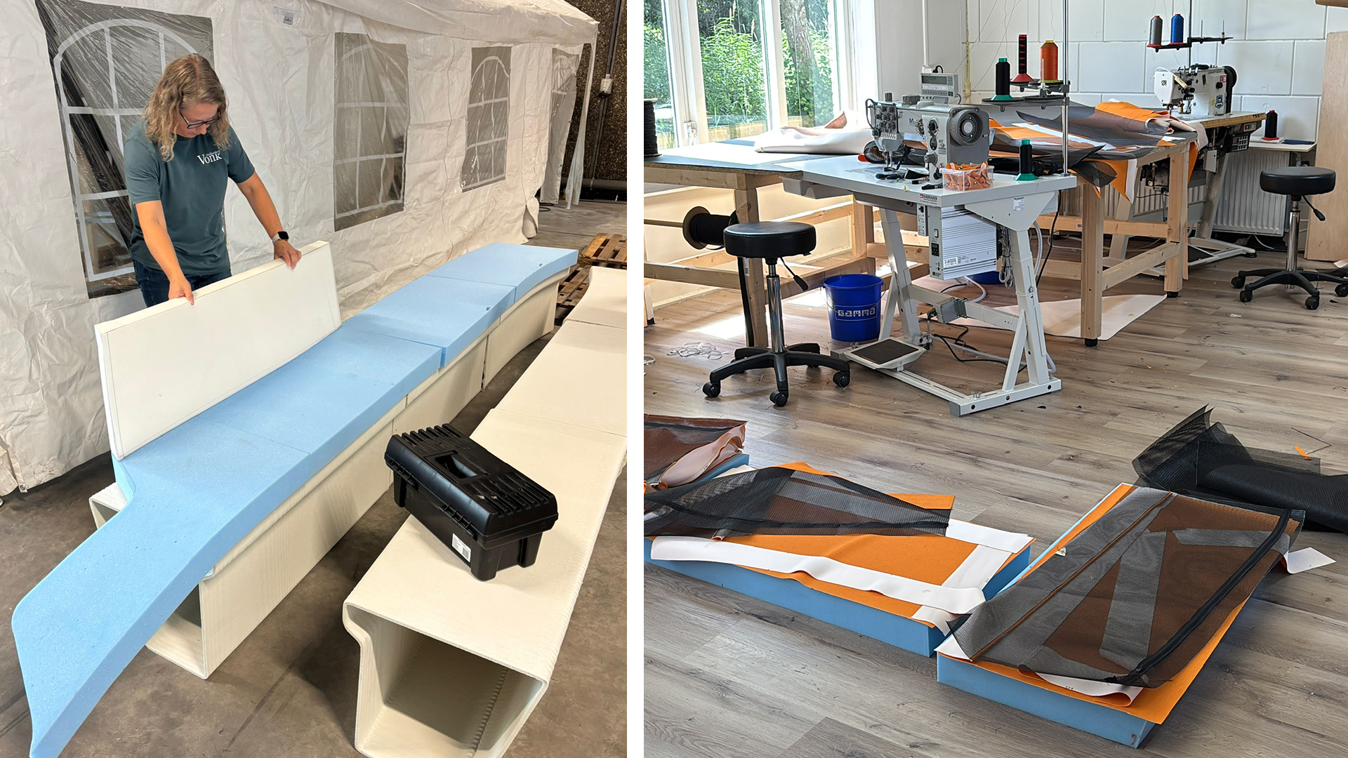 • Een boot van Van Plaggen Boats, volledig ontworpen én geprint met een 3D-printer — de boot bestond nog niet eens toen ik de kussens maakte. Op basis van bouwtekeningen heb ik mallen gemaakt, laten printen en alle kussens vervaardigd.